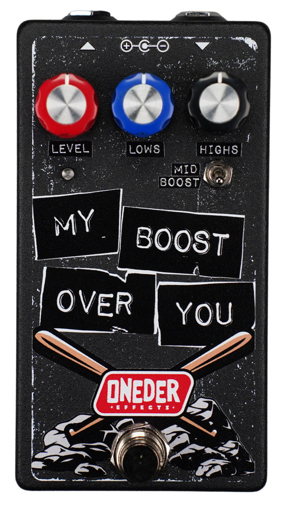 My Boost Over You was designed to slam the front of a high-gain amp, the same way Chad has been setting up his live and studio rigs since the early days. But don't fret, this pedal sounds equally amazing in front of an amp modeler or digital rig, even into a clean channel! Whether you're tightening the low end, adding bite to your solos, or just looking to push your rig into pop-punk paradise, My Boost Over You is the Swiss Army knife your board has been missing.
